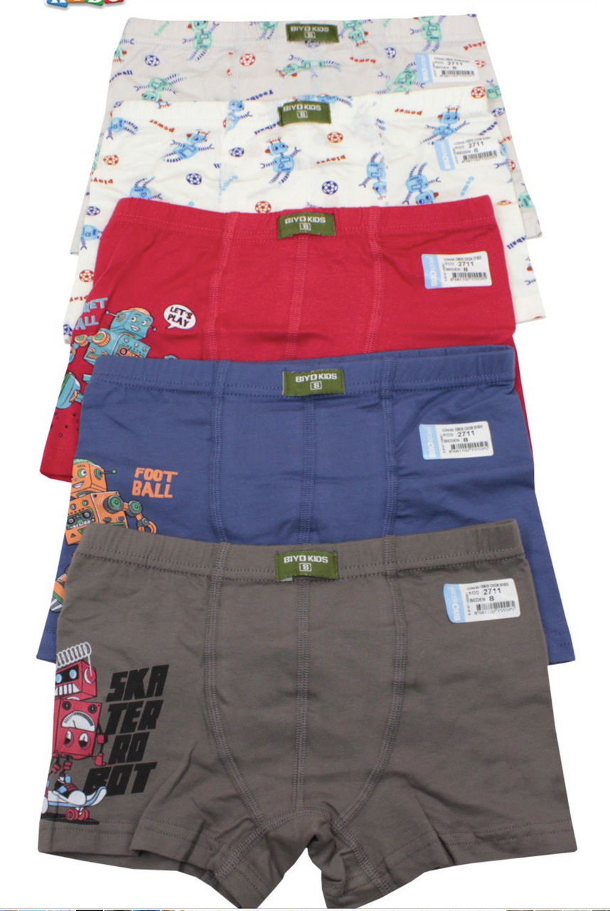 Бавовняні боксери для хлопчиків. Продаються пакуванням, в пакованні 5 шт. в одному розмірі та різних кольорах. Склад: 90% бавовна. Країна-виробник: Туреччина. Фирма: Biyo kids. Доступні розміри: 8-9 років