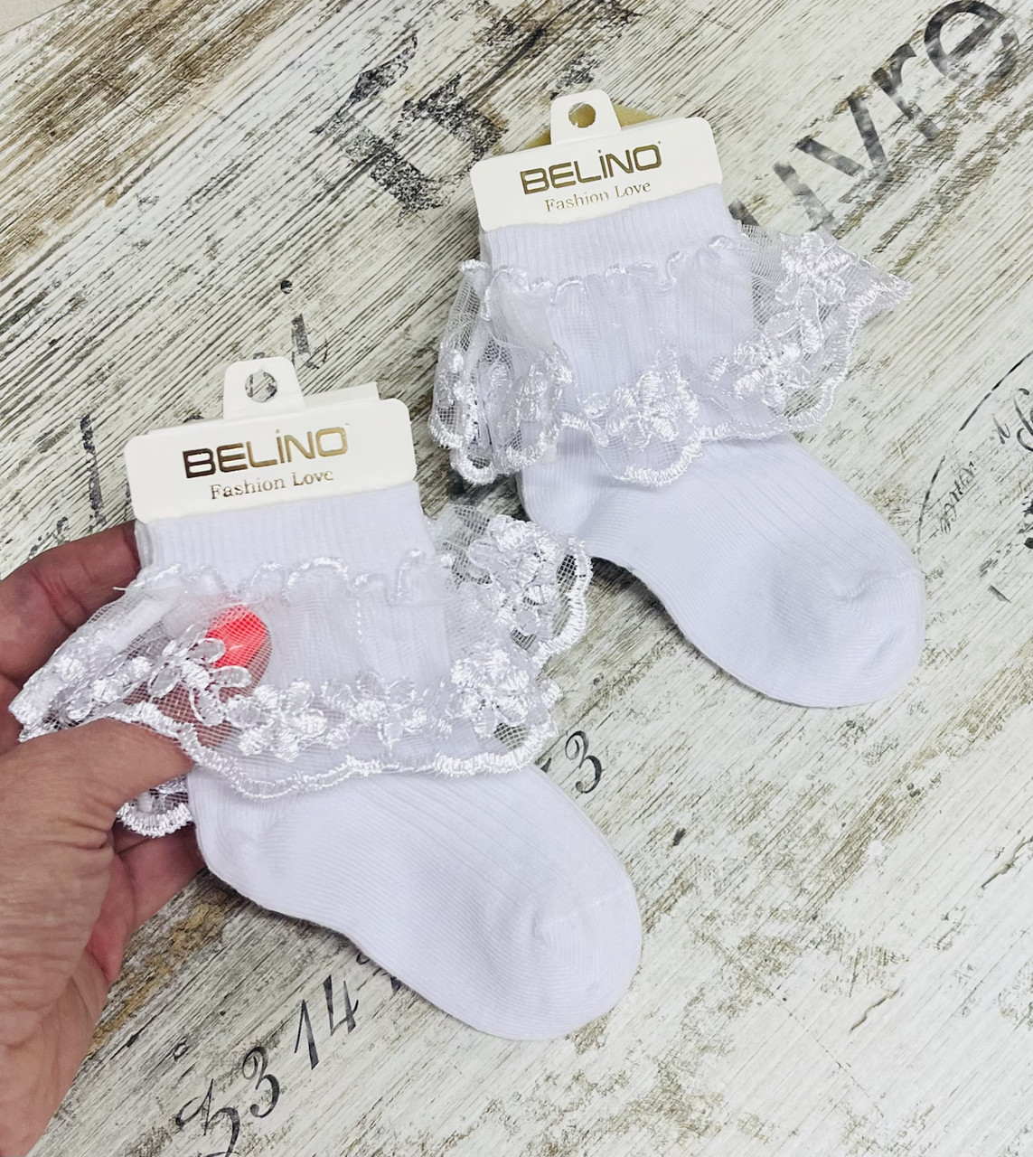 Бавовняні шкарпетки для дітей .Доступні розміри: 1-2,3-4,5-6 років. Продаються упаковкою, в пакованні 3 пари одного розміру в білому кольорі. Склад: 90% бавовна. Виробник: Belino. Туреччина. Повномірні.